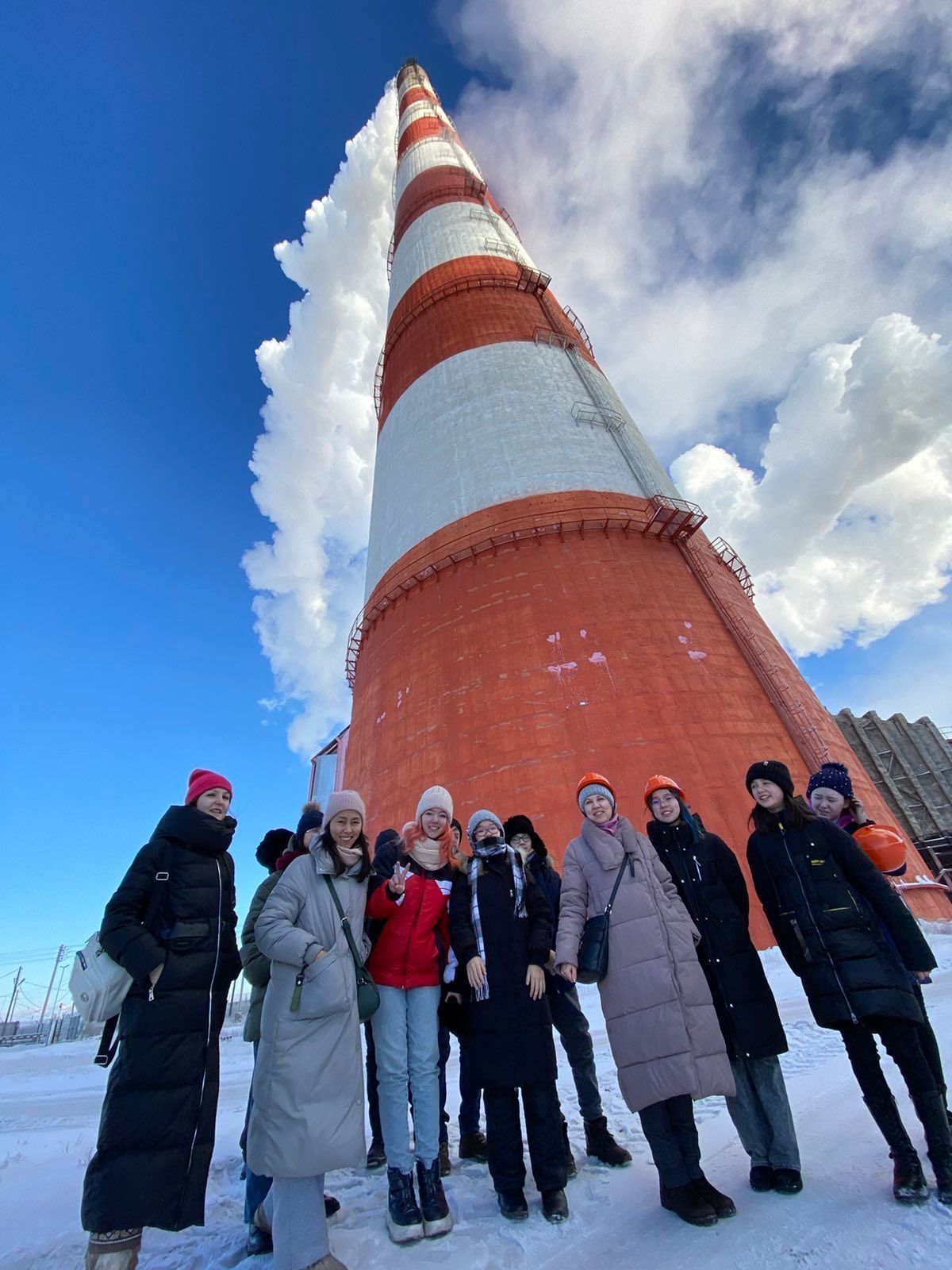 Заключением экскурсии стала остановка у подножия 330-метровой трубы второй очереди Гусиноозёрской ГРЭС, которая входит в число двадцати пяти высочайших труб всего мира.