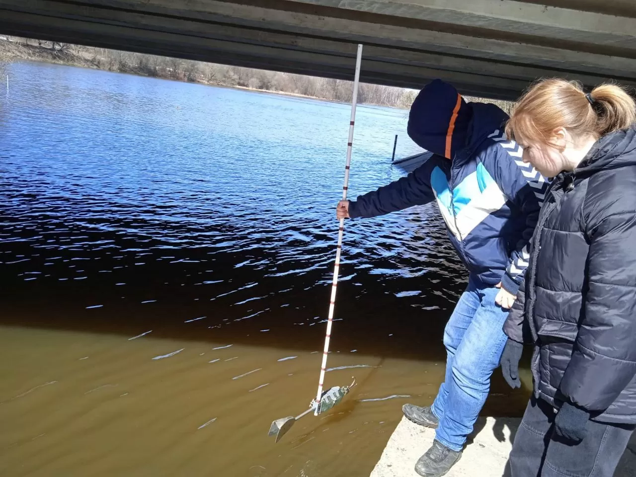 Отбор проб воды на р. Пехорка для исследования в лаборатории ГБПОУ МО «Гидрометеорологический техникум»